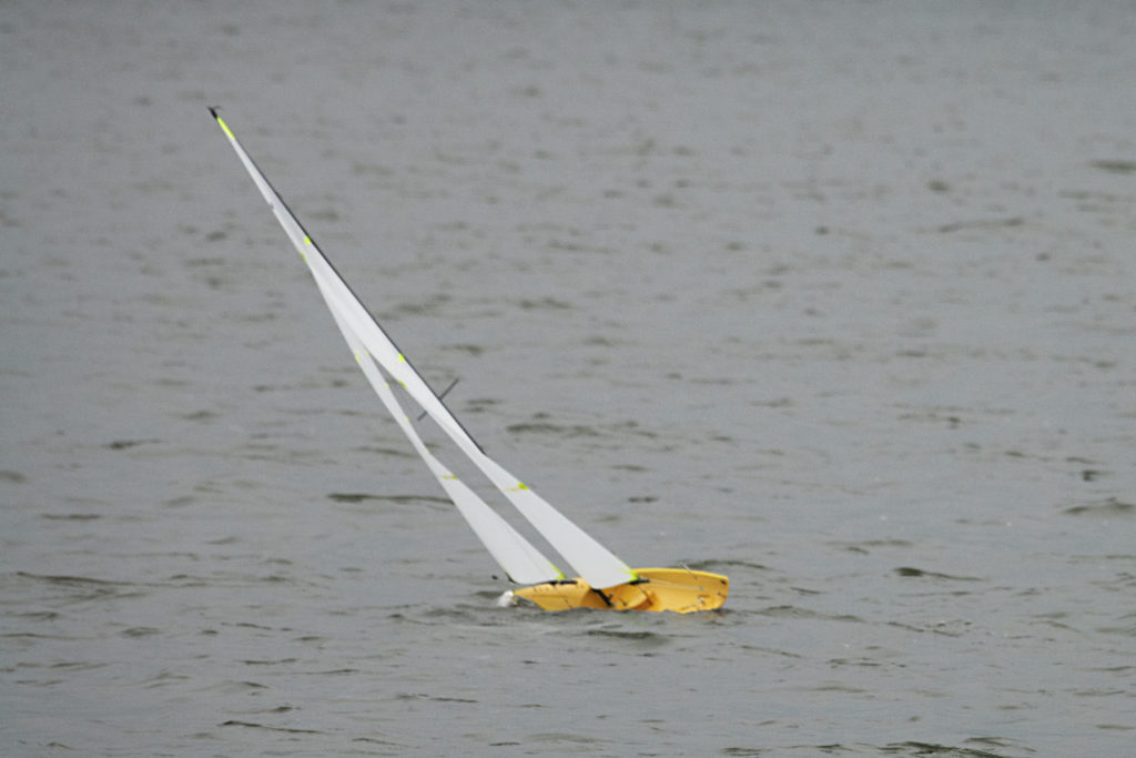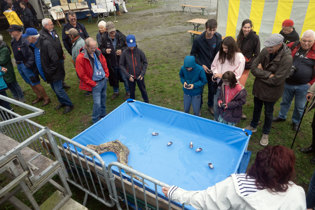 La météo n’était malheureusement pas de la partie. Le vent et un fort clapot ne nous ont pas permis d’installer notre port Breton et on empêché la navigation des modèles les plus fragiles.